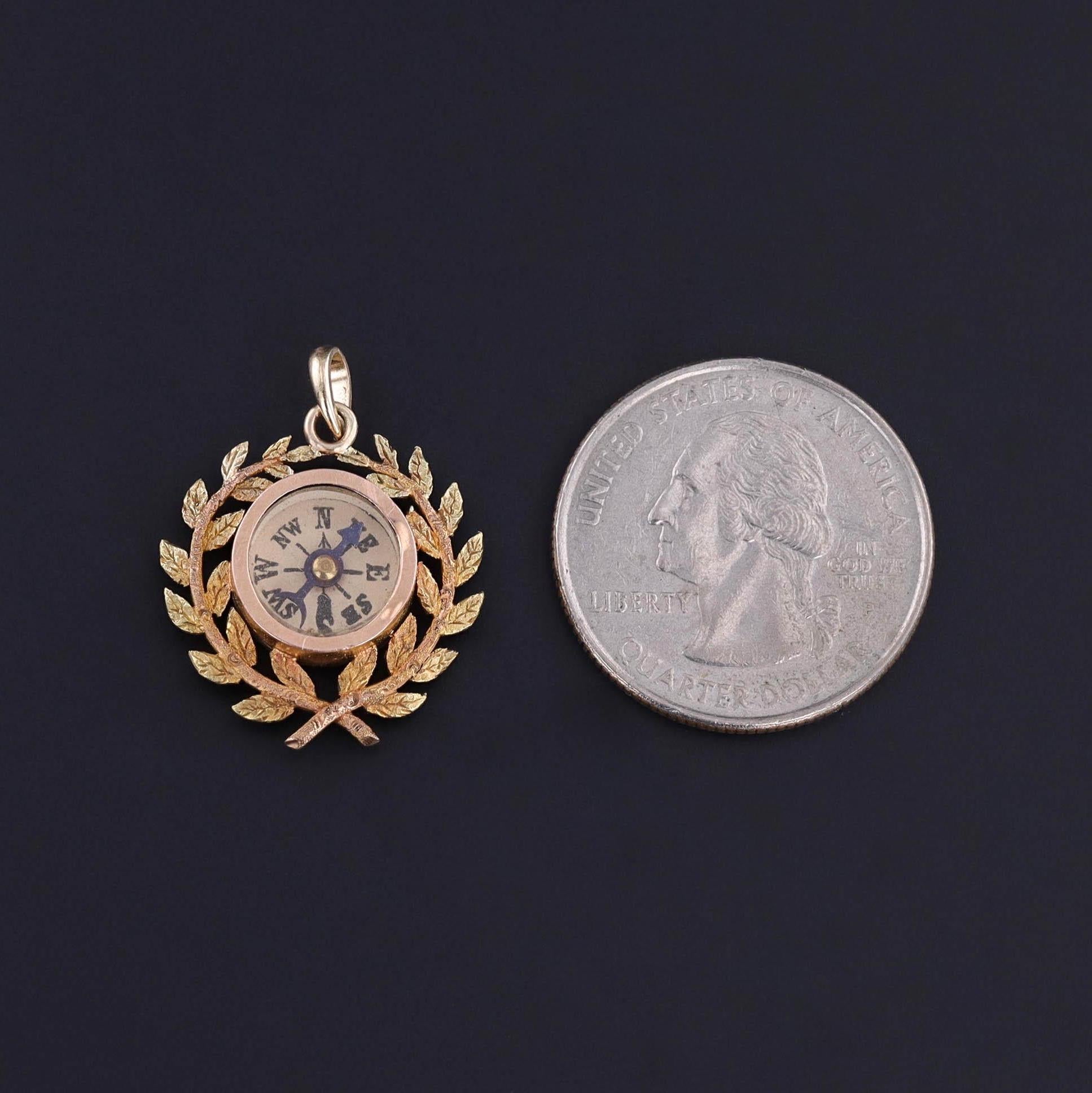 Antique Compass Pendant: This antique pendant (circa 1900-1910) features a working compass within a wreath of 15ct gold.