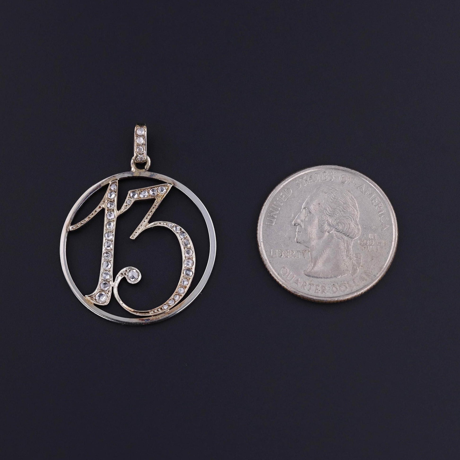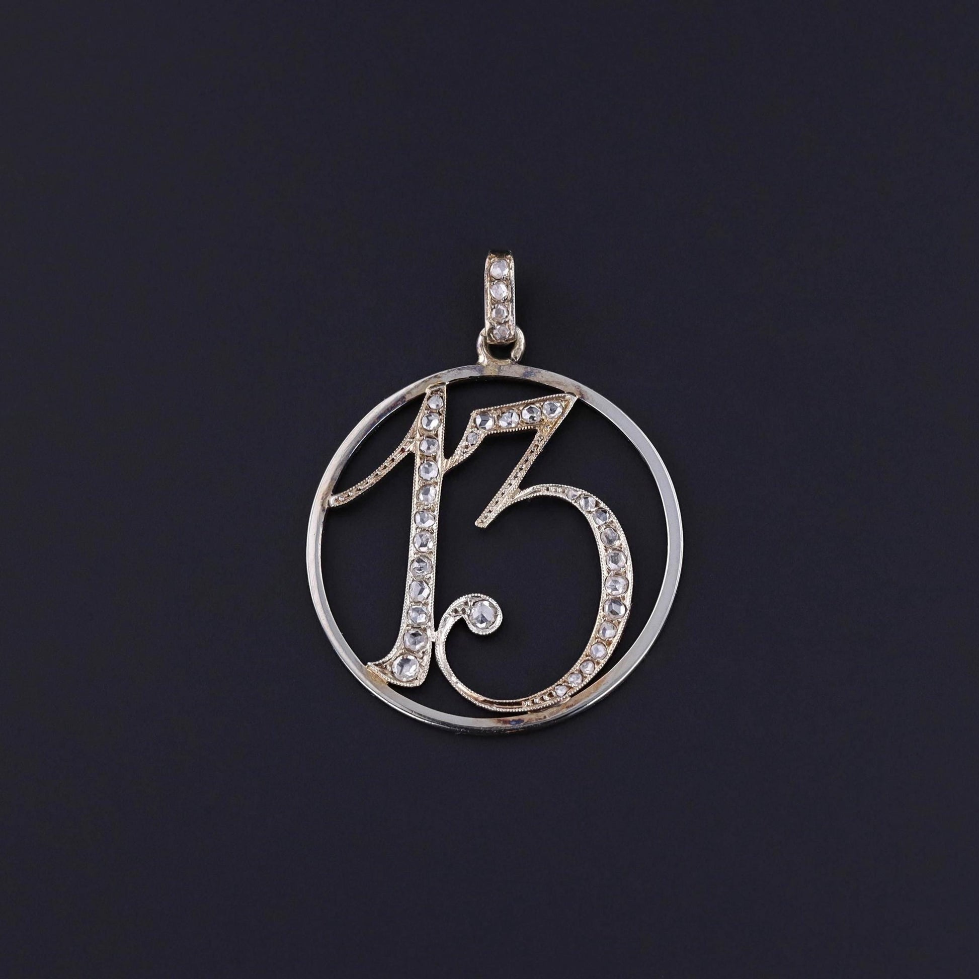 Antique Diamond Lucky Number 13 Pendant: This antique pendant (circa 1920) features the number 13, adorned with glittering rose cut diamonds set in 18k white gold.