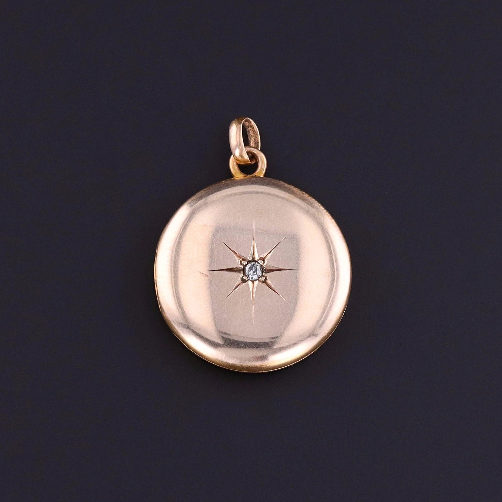 This 10k gold antique locket (circa 1900-1910) features a hand etched star with a diamond accent.