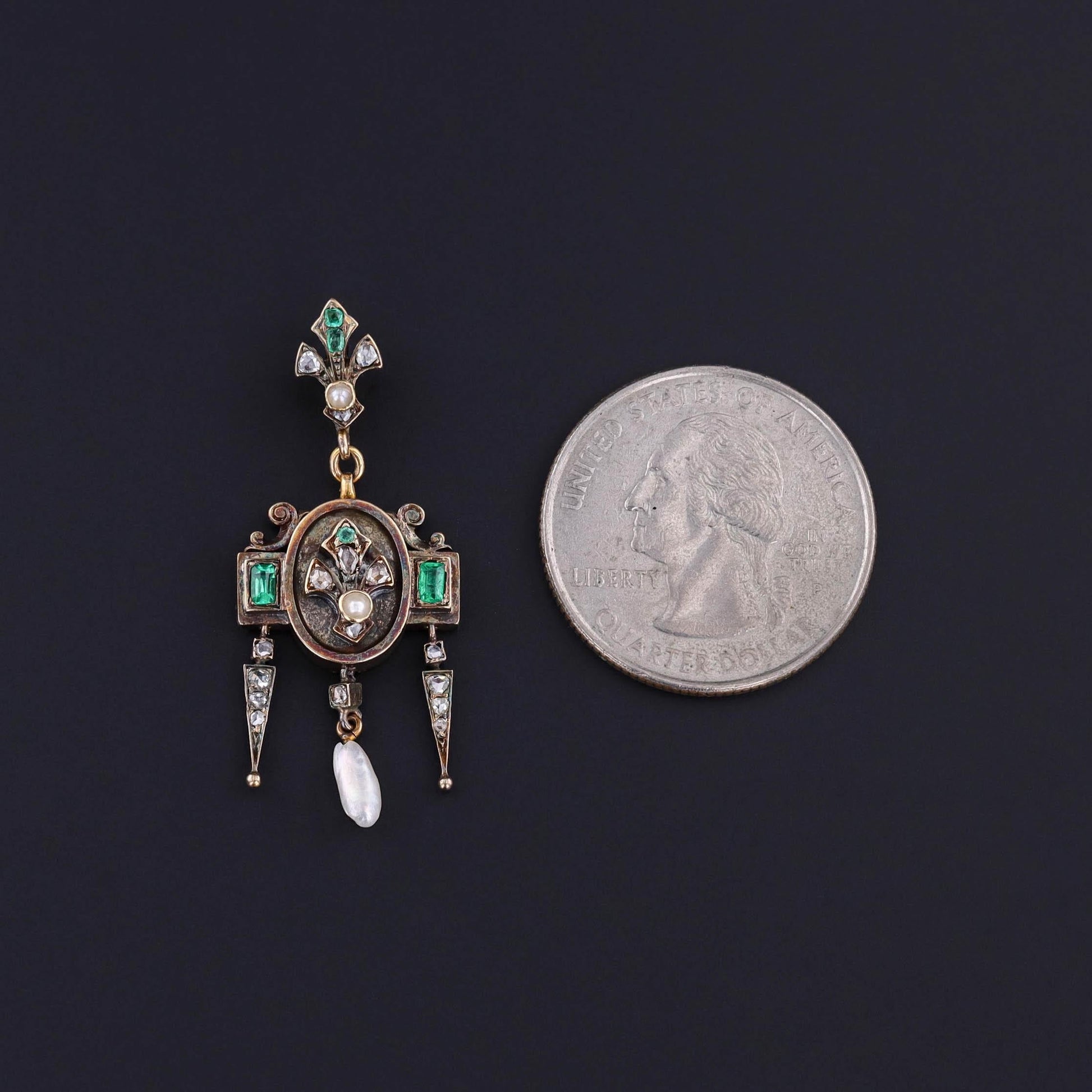 Antique Emerald Diamond and Pearl Pendant of 18k Gold