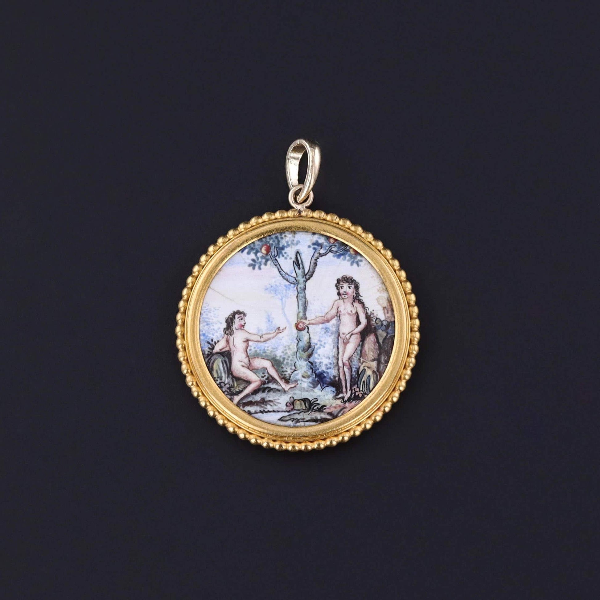 Antique Enamel Adam and Eve Pendant of 14k Gold