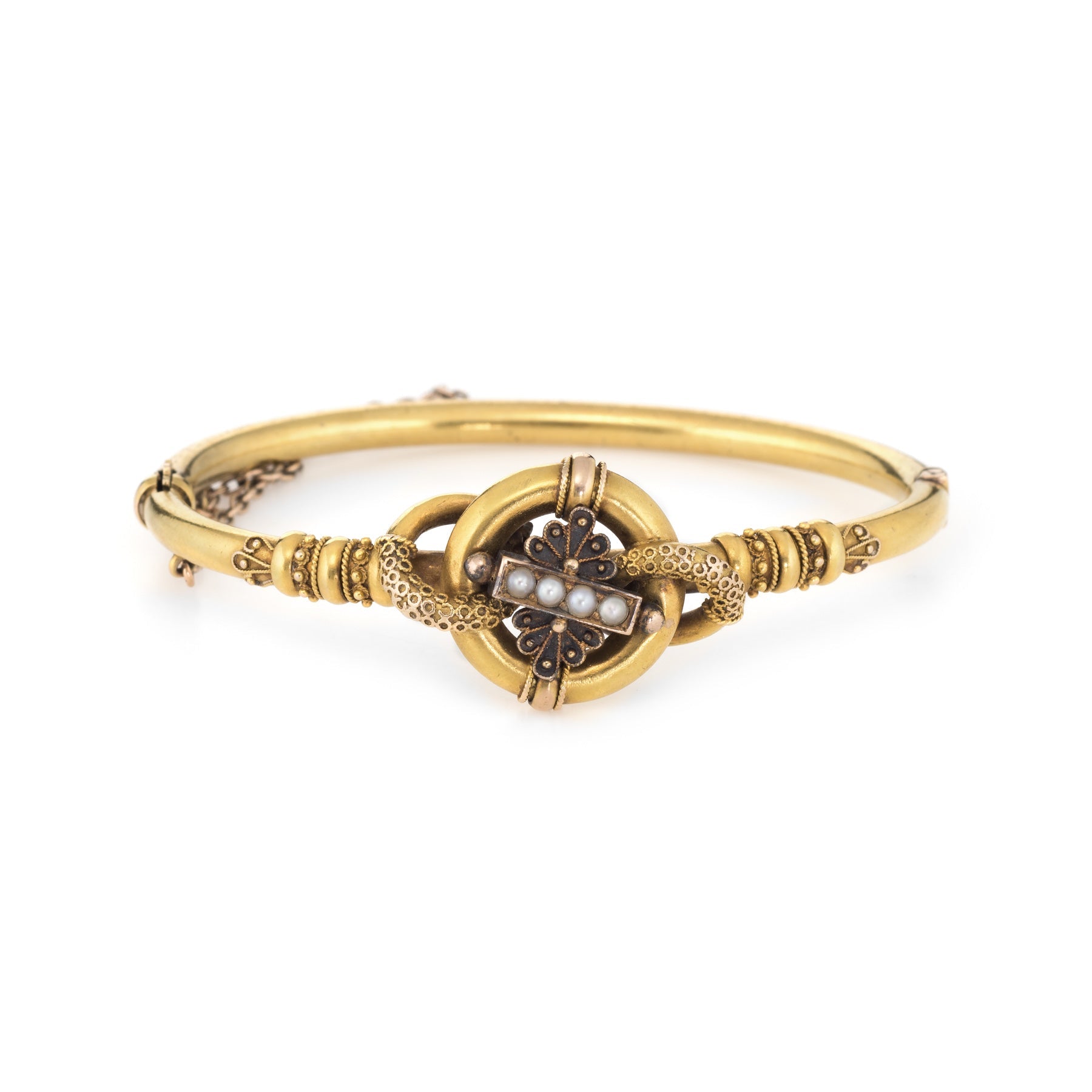 Antique Victorian Etruscan Revival Bracelet 14k Yellow Gold Seed Pearl Bangle