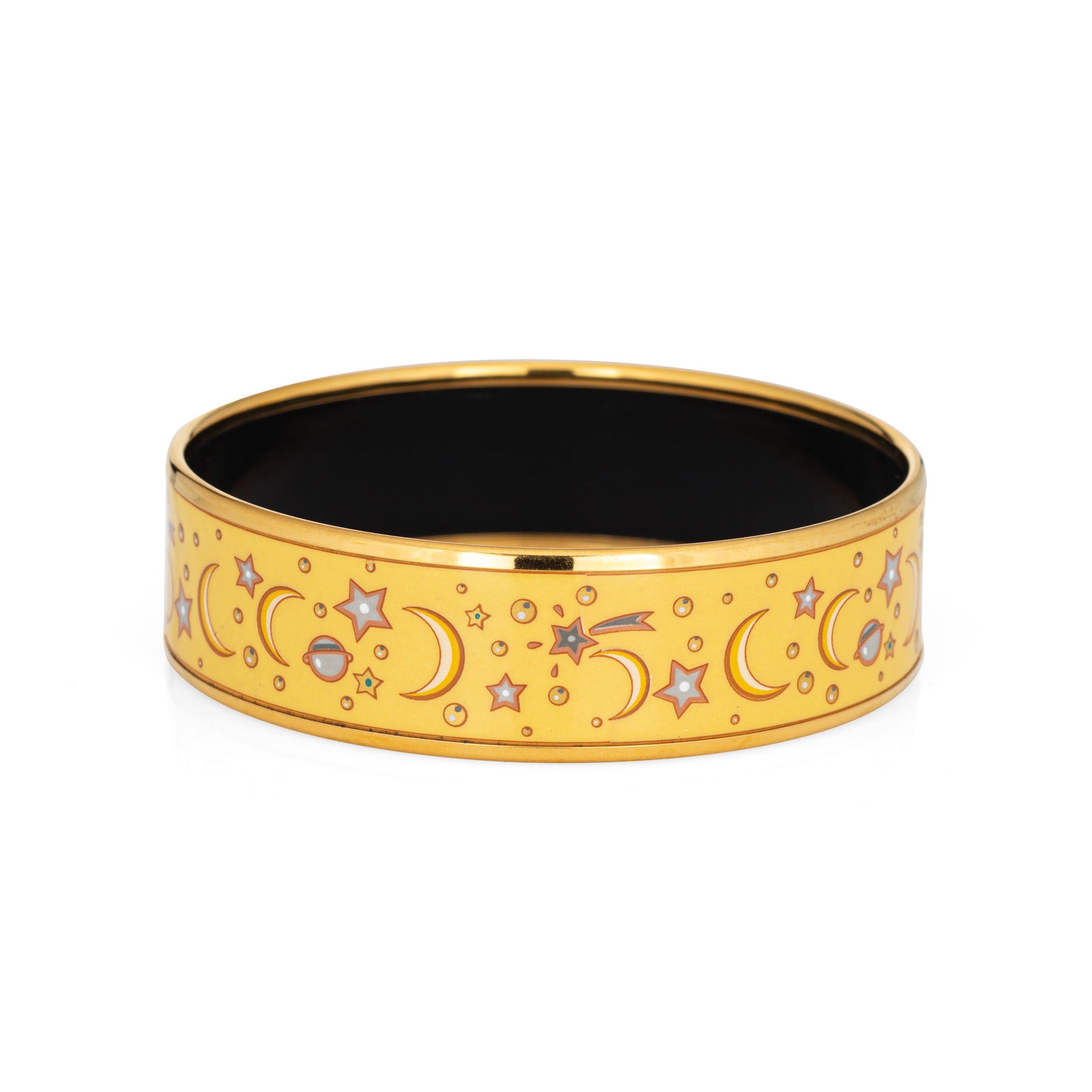 Hermes Enamel Bangle Bracelet Moon Star Wide 62 PM Yellow Celestial